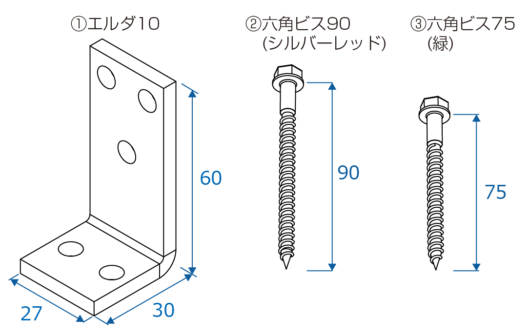 | ②六角ビス90(シルバーレッド) | 2本 |