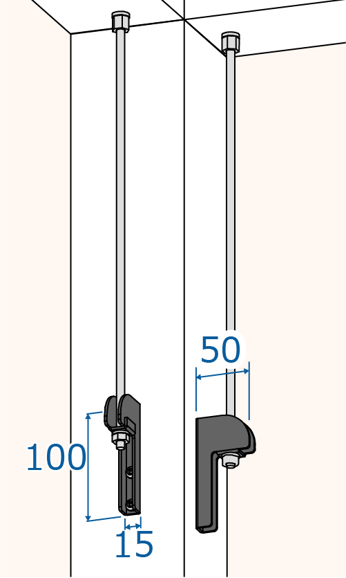 ランサー プレートをランサー ボルトに通します。ボルト端部にツインナットM8をダブルナットにして固定します。